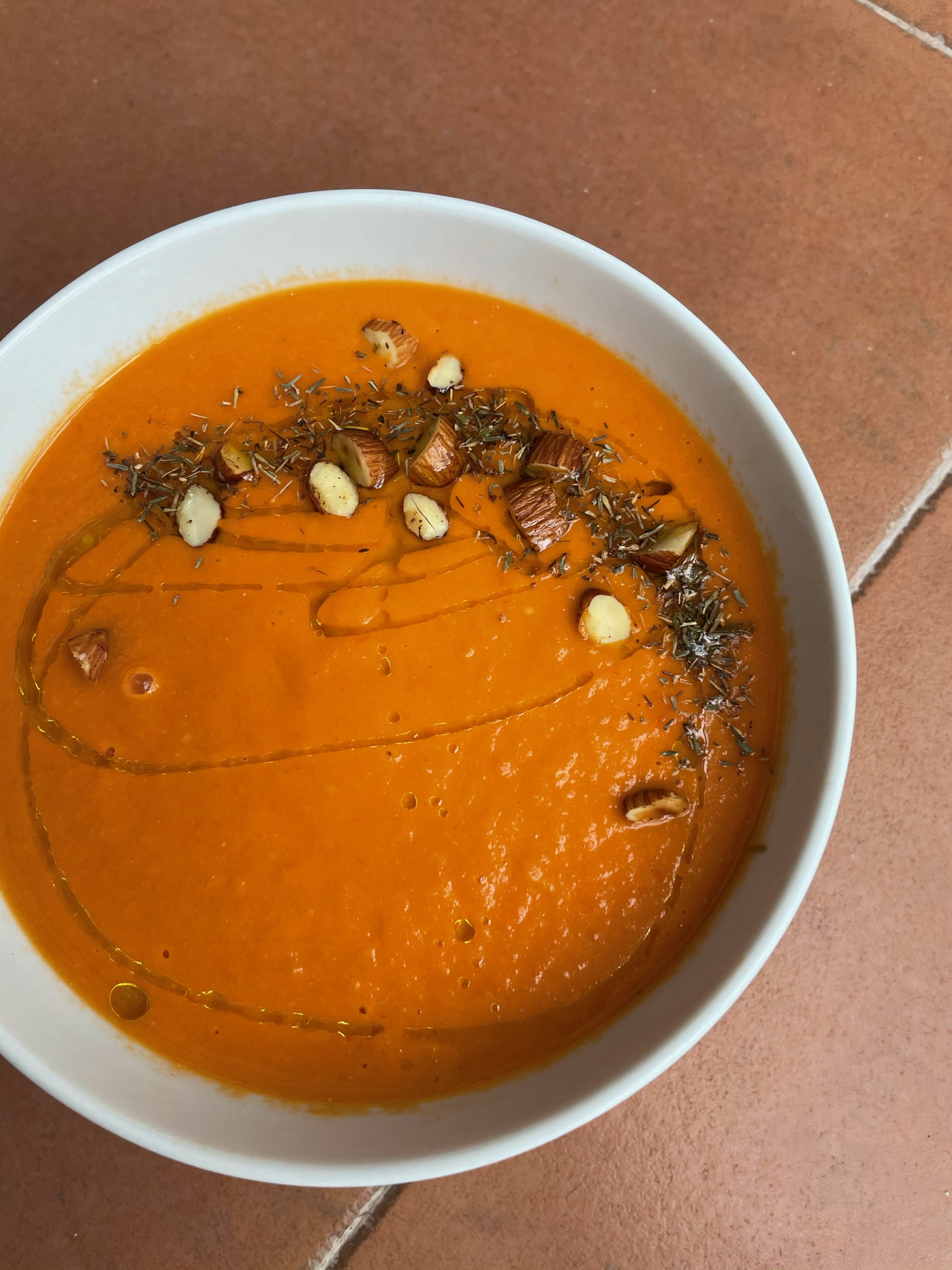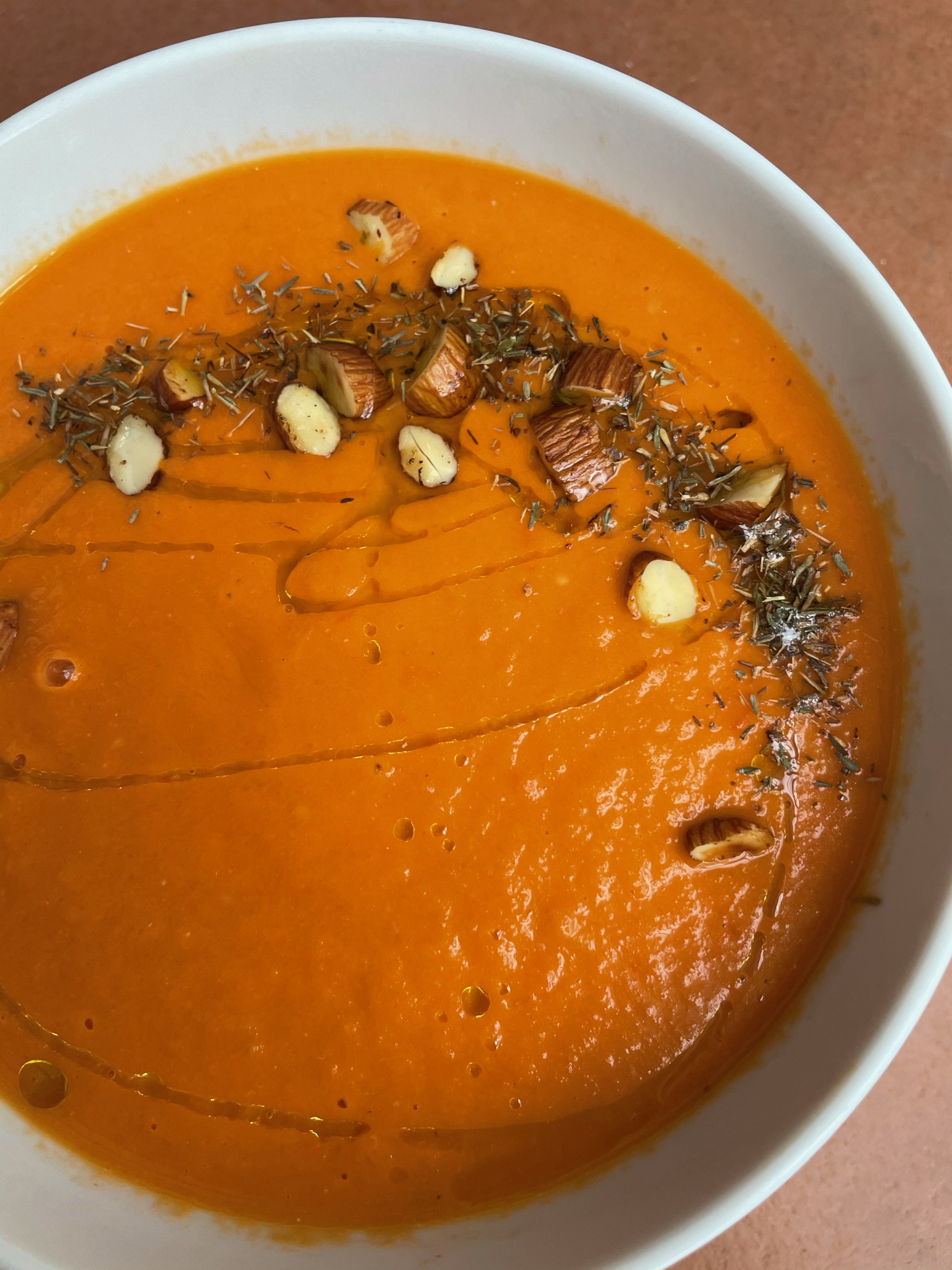 (Optional) Top with lightly roasted almonds and thyme.