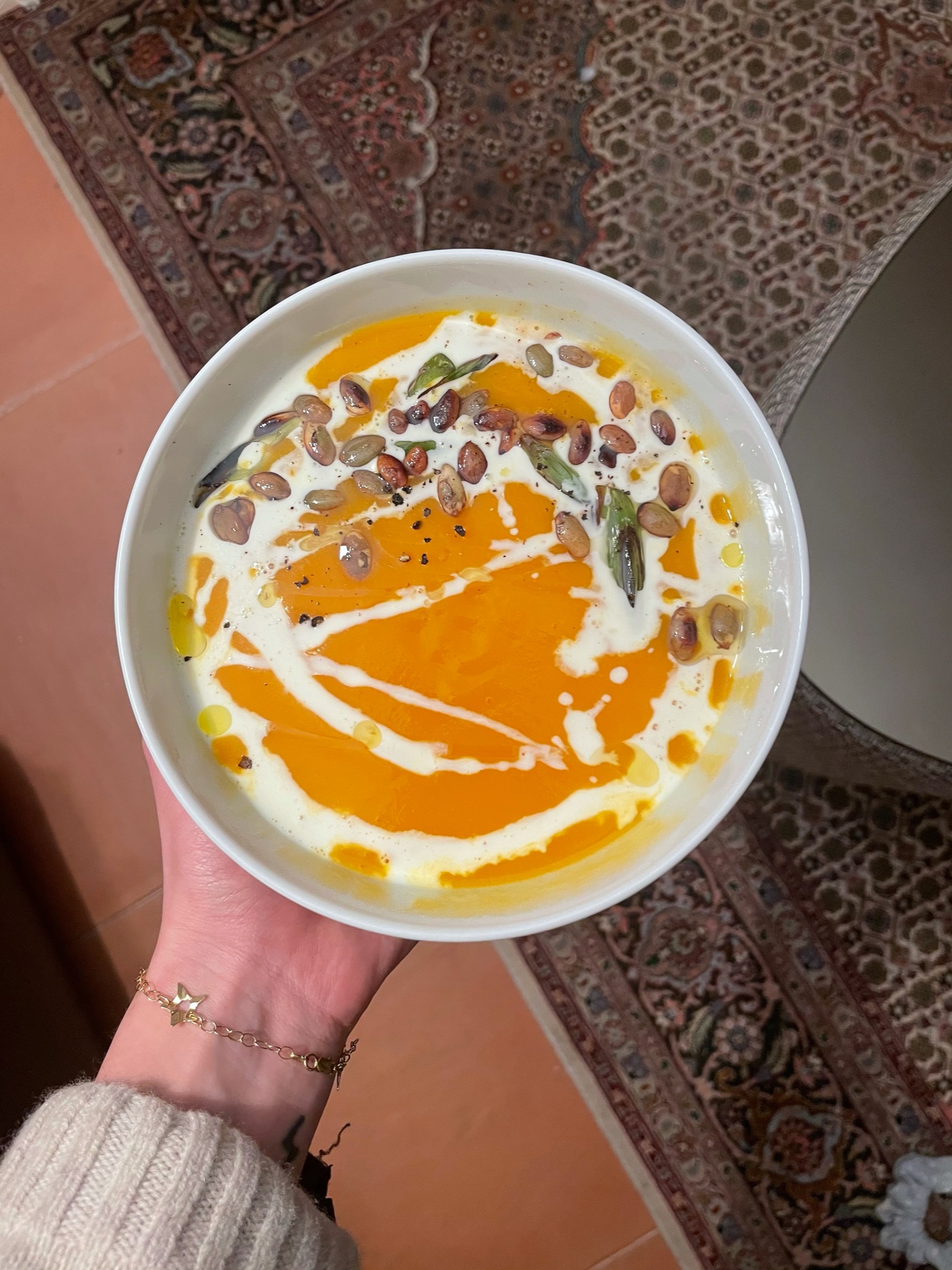 We were seated in the inner back area which was quite pleasant since there you felt like in a cave with a lot of intimacy. The eating room at the entrance is more exposed, but great for celebrations. And the terrace, is probably also great to just have a drink. They serve a wide range of cocktails, each for 11€.